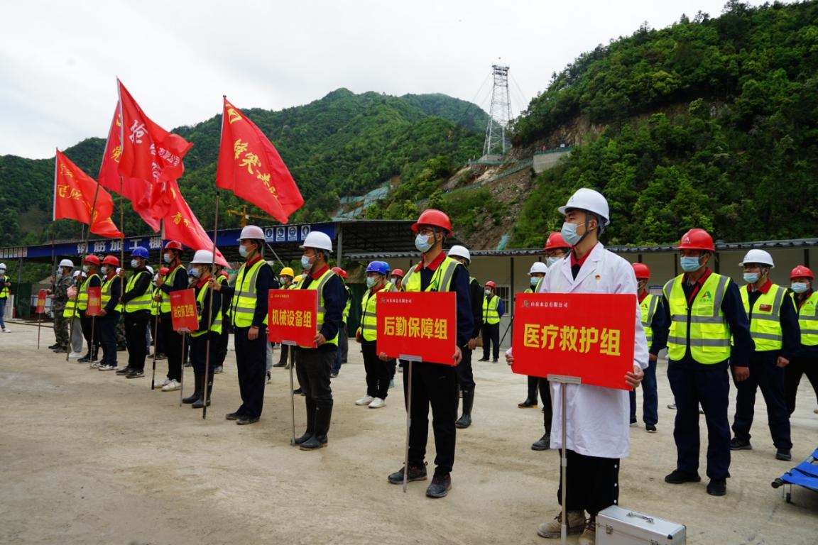 浙江省2022年汛期即将来临,为了确保工程安全度汛、提高参建人员风险防范意识和应急处置能力,4月14日上午,杭州鲁润公司组织杭州双溪口水库工程各参建单位人员开展2022年防汛防台和消防应急救援演练。杭州市水利质监中心、临安区水利水电局、清凉峰镇人民政府、双溪口水库工程指挥部领导到场观摩指导。