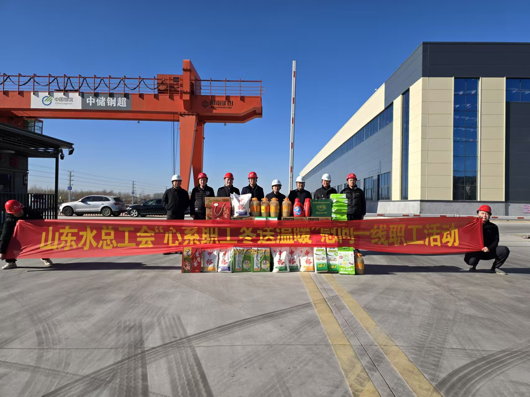1月8日,公司党委委员、副总经理袁英杰一行到山东小清河仓储物流有限公司仓储物流项目开展“心系职工,冬送温暖”活动。第五分公司总经理蔡国森陪同。